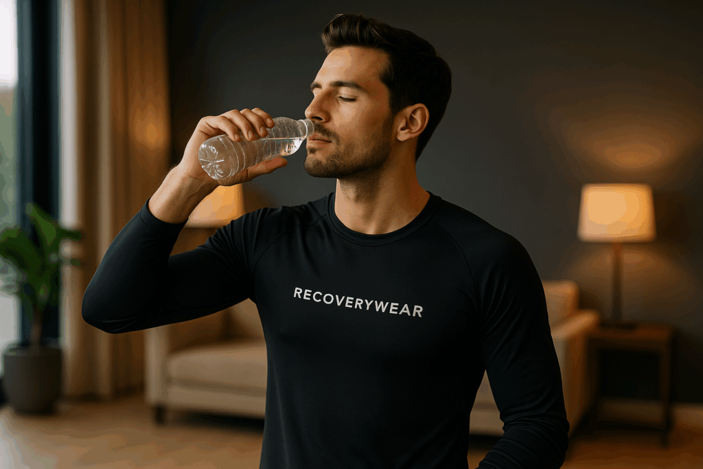 脱水状態のままリカバリーウェアを着ると、温熱でさらに汗が出てしまい、血液濃度が上昇して疲労感が強くなるおそれがあります。