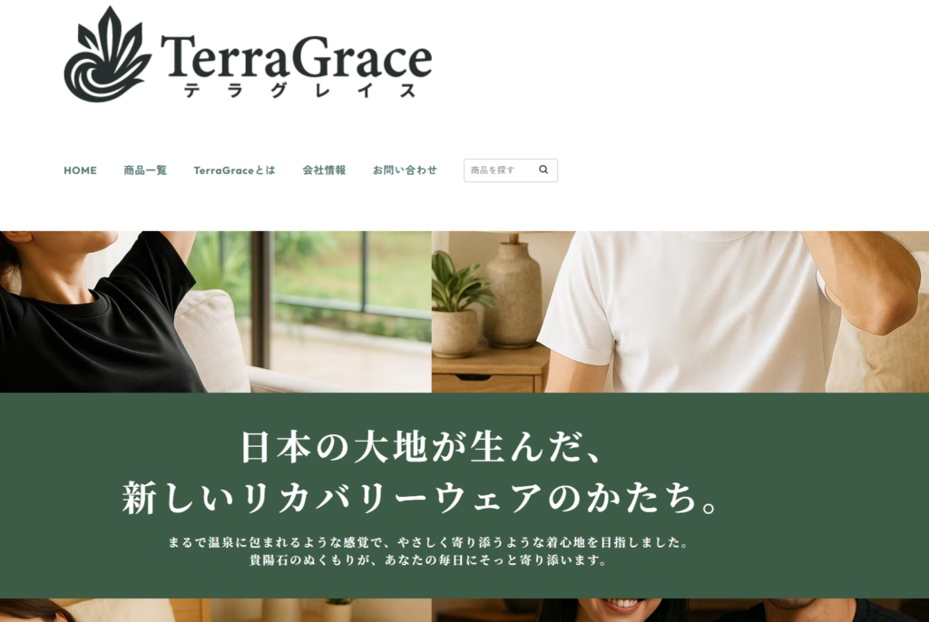 TerraGraceは、日本の大地が育んだ天然鉱石(貴陽石)を繊維にプリントする独自技術で、遠赤外線・近赤外線・テラヘルツ波・マイナスイオンといった自然由来のエネルギーを放出。まるで陽だまりに包まれたような穏やかな温もりと心地よさが魅力です。軽く乾きやすい素材で、洗濯後も機能や着心地が落ちにくく、毎日の使用に向いています。