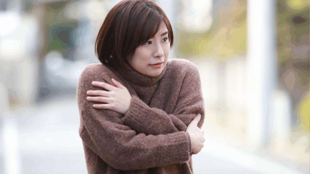 その結果、手足や末端の血行が悪くなり、「手足が冷たい」「布団に入っても温まらない」といった冷えを感じやすくなります。