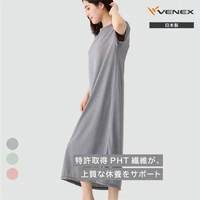 VENEXは、2010年頃から「休養時専用ウェア」としてリカバリー分野に取り組んできたブランドです。独自開発のPHT繊維(鉱物を繊維に練り込んだ素材)を採用し、やさしいフィット感とストレスの少ない着心地を重視しています。